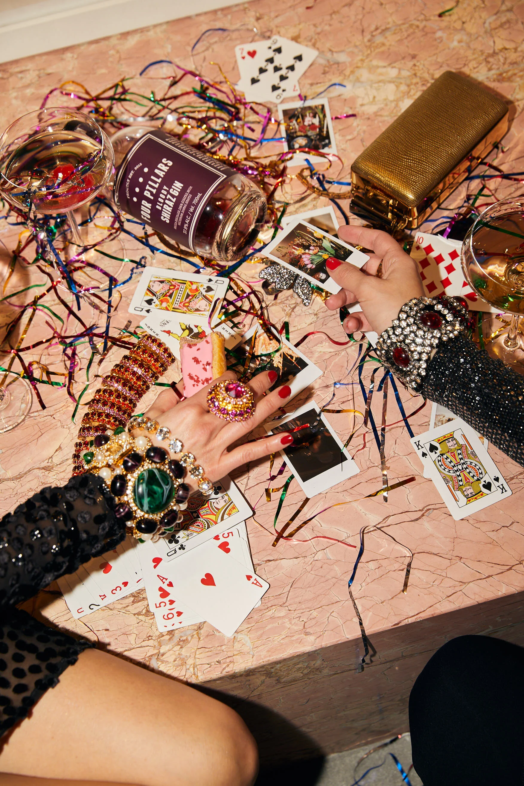 This is the most seriously unserious party you will ever see! Hence, this party called for the most striking jewels from Moans Couture, Gucci, Alexis Bittar, Kenneth Jay Lane and Danilova’s vintage treasures. Feast your eyes below on all the beauties below.