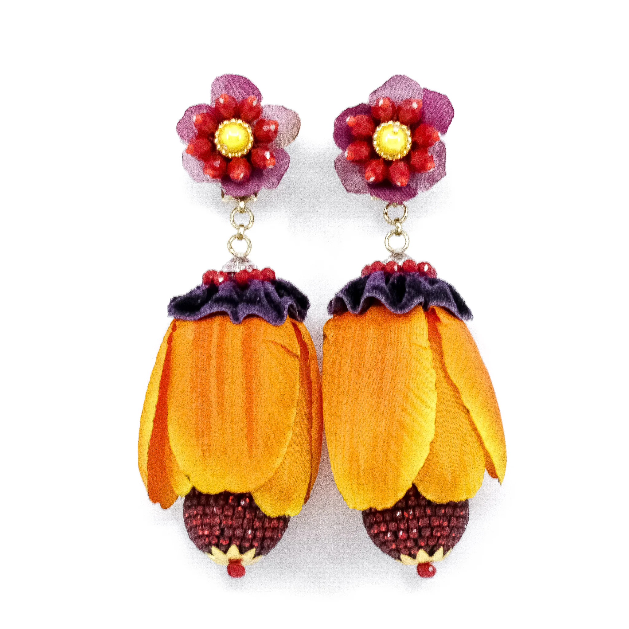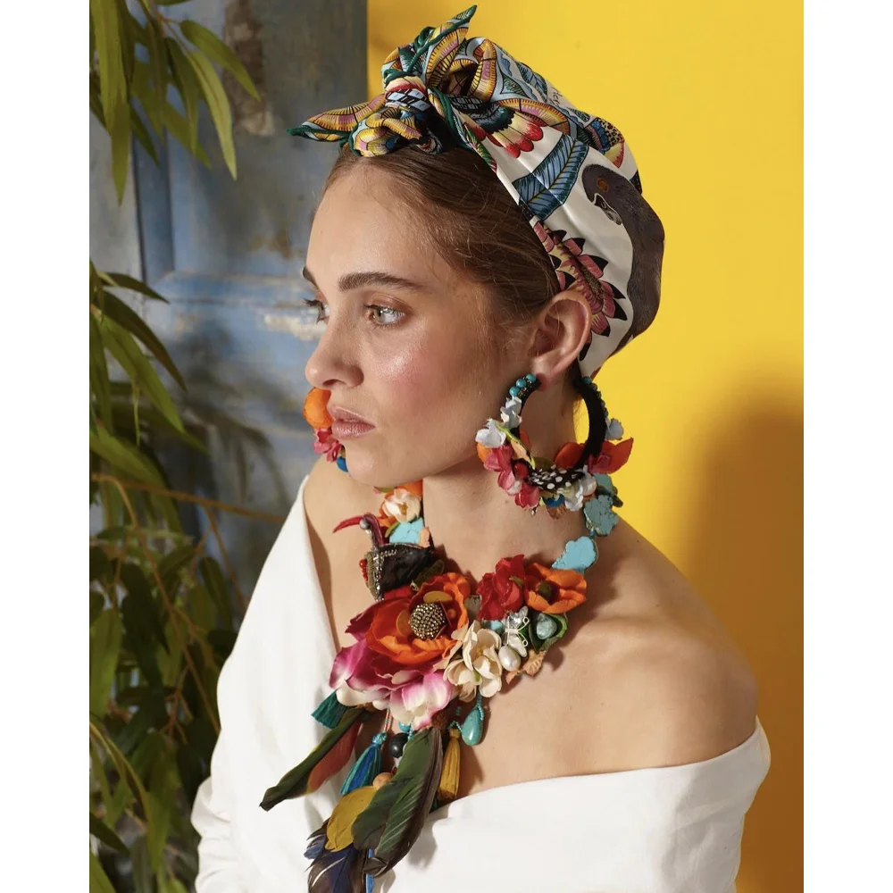 Inspired by her own rich and visual heritage of India, as well as her travels to exotic countries, Ranjana Khan's eclectic jewelry is always complemented by her innate sense of style. Her quality designs are bold statement pieces that are light as a feather to the earlobe, and handcrafted using the most rare and unusual materials. Vintage beads, semi precious stones, feathers, burnt