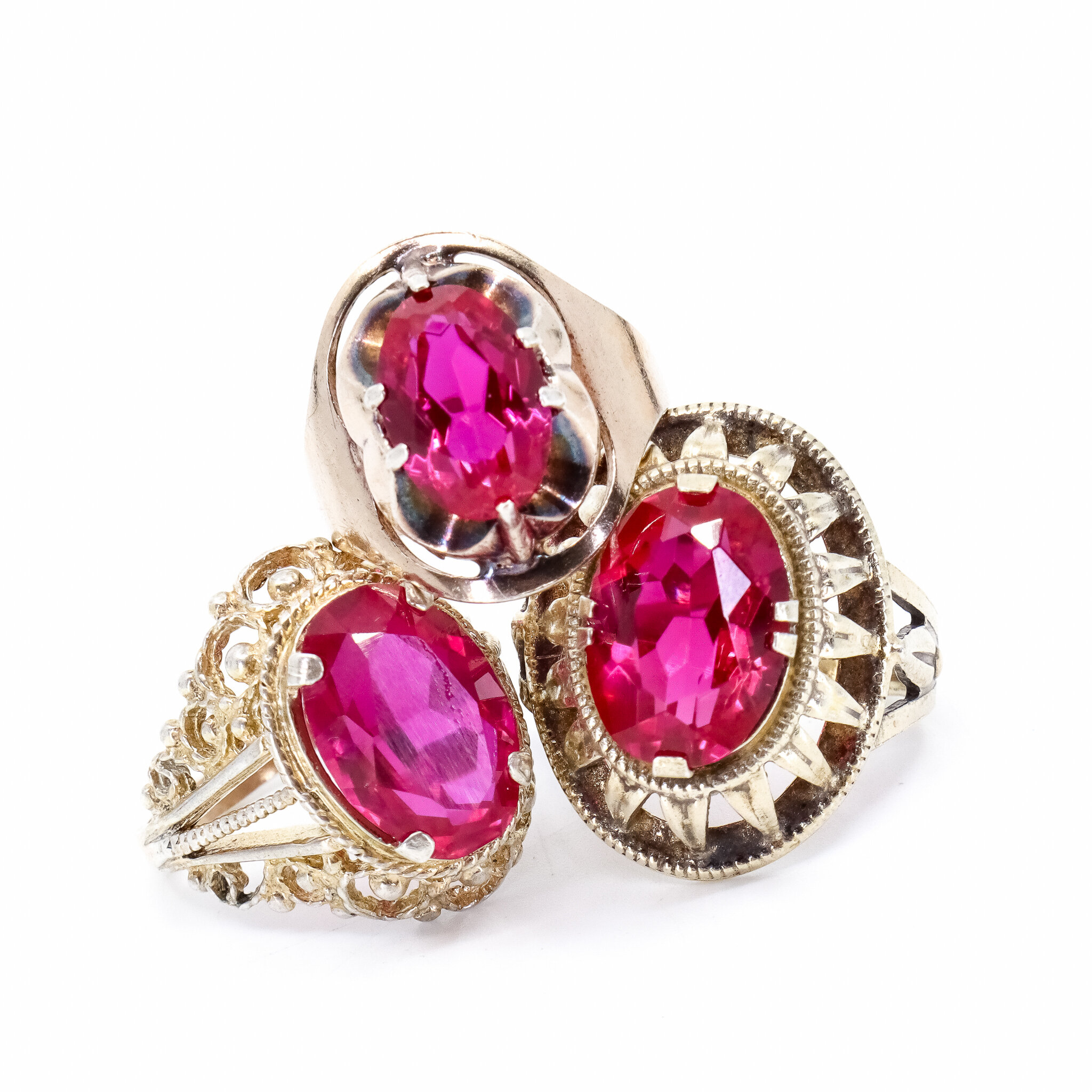 Vintage, Set of 3, Gilded Corundum Rings in Pink