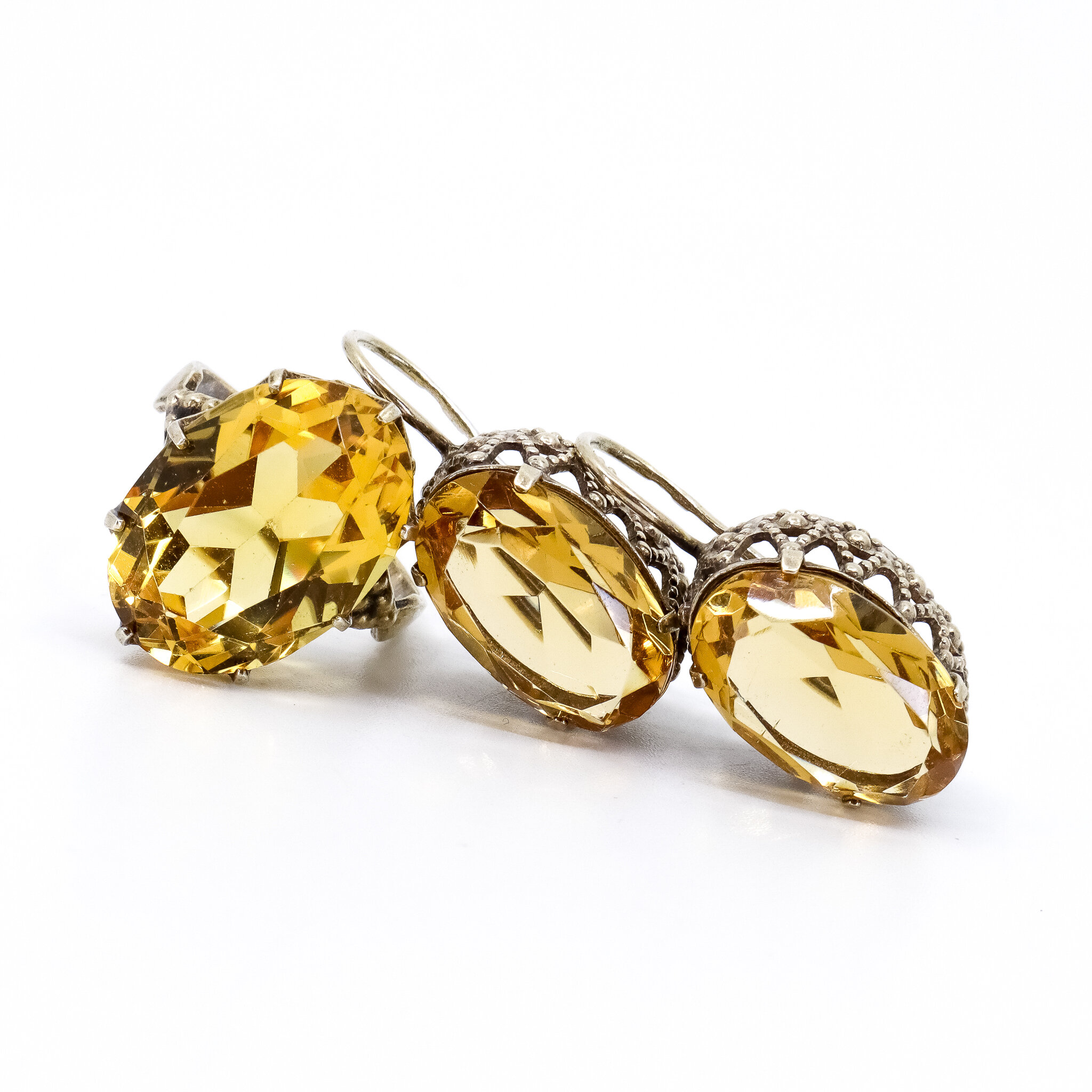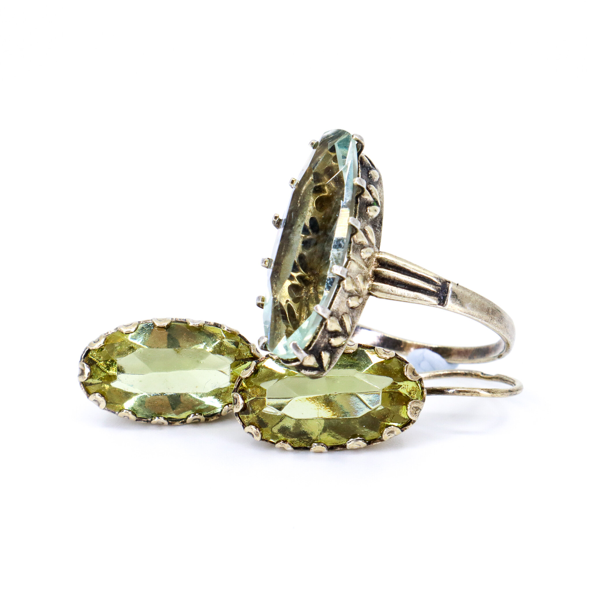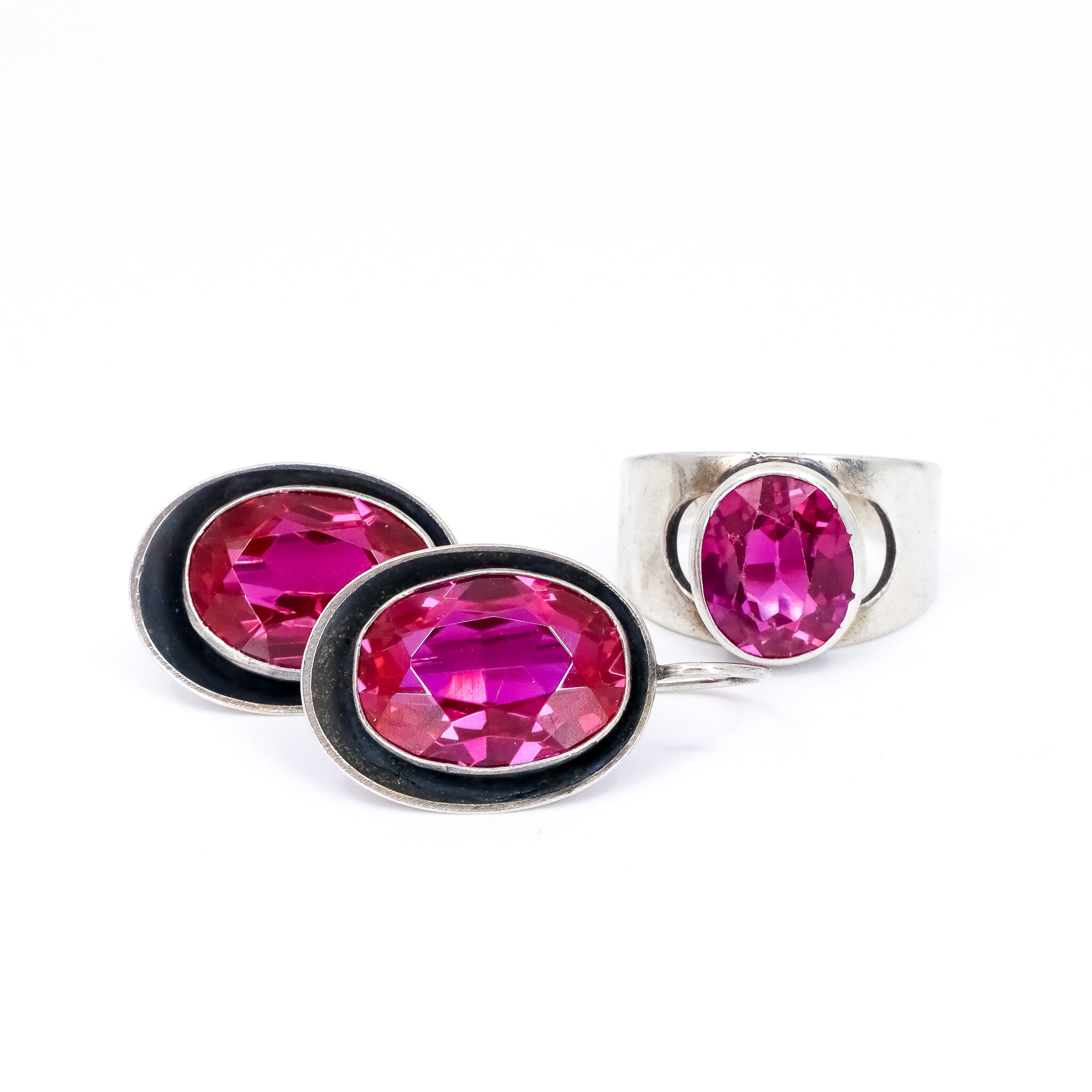 Vintage, Set of 2, Quartz and Corundum, Earrings and Ring in Silver