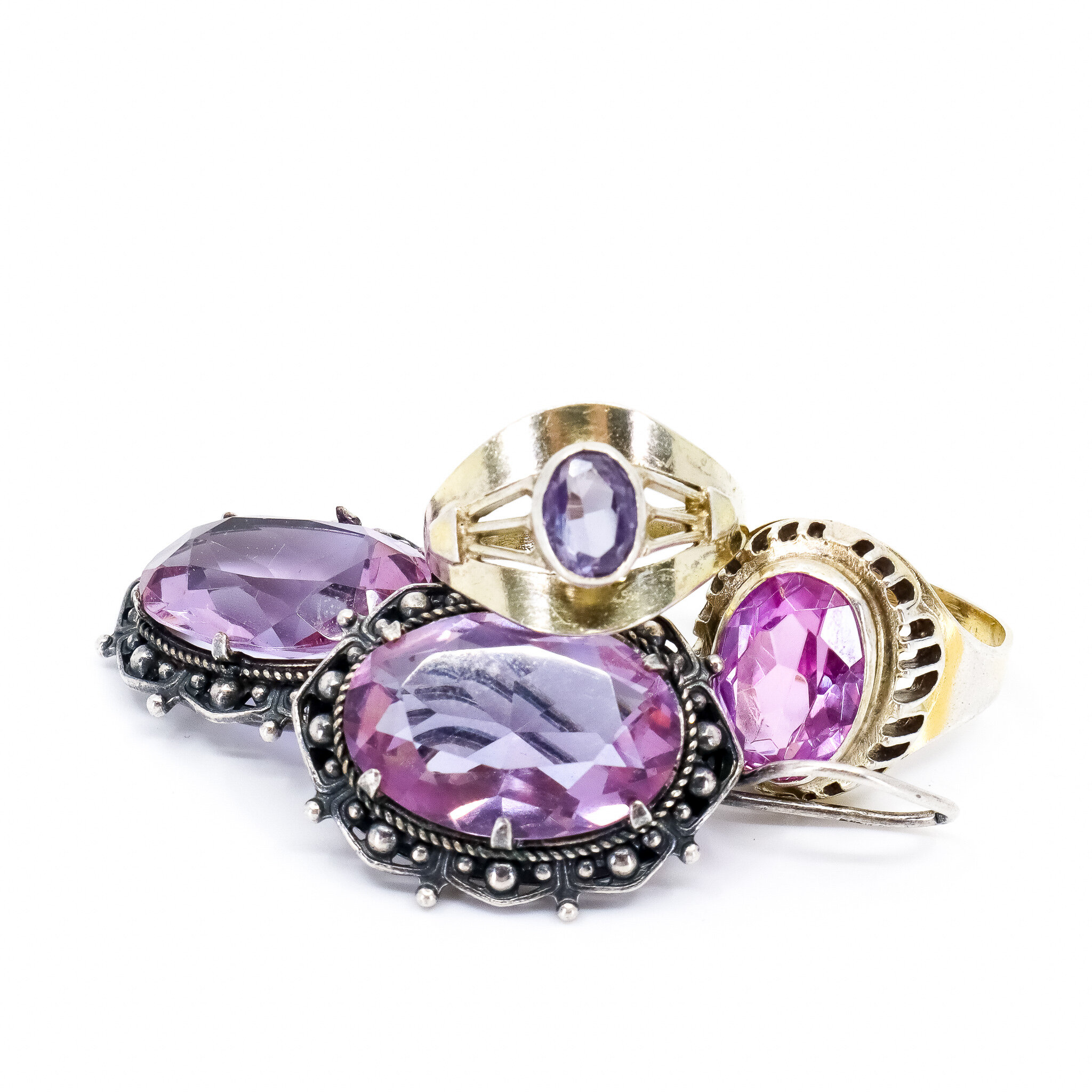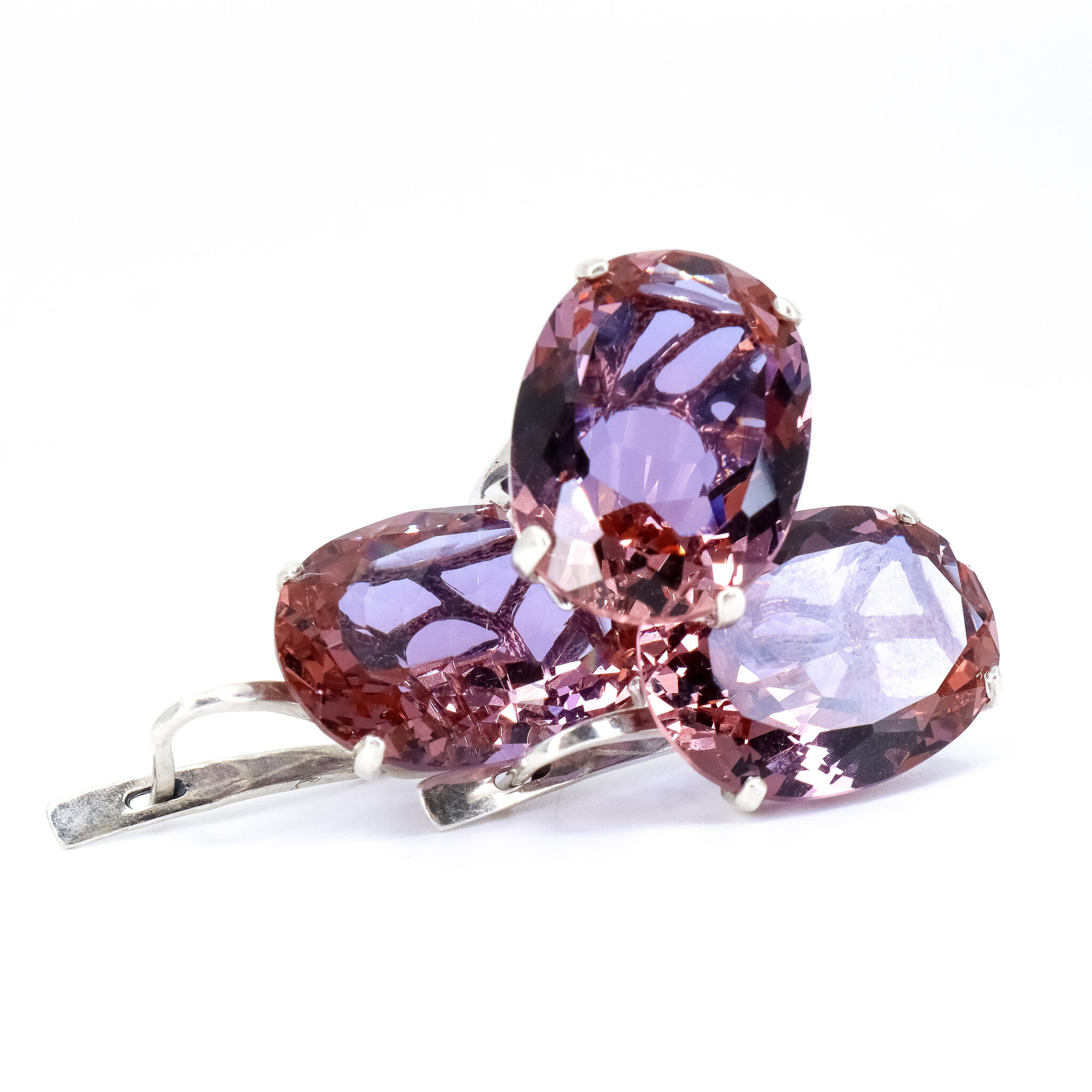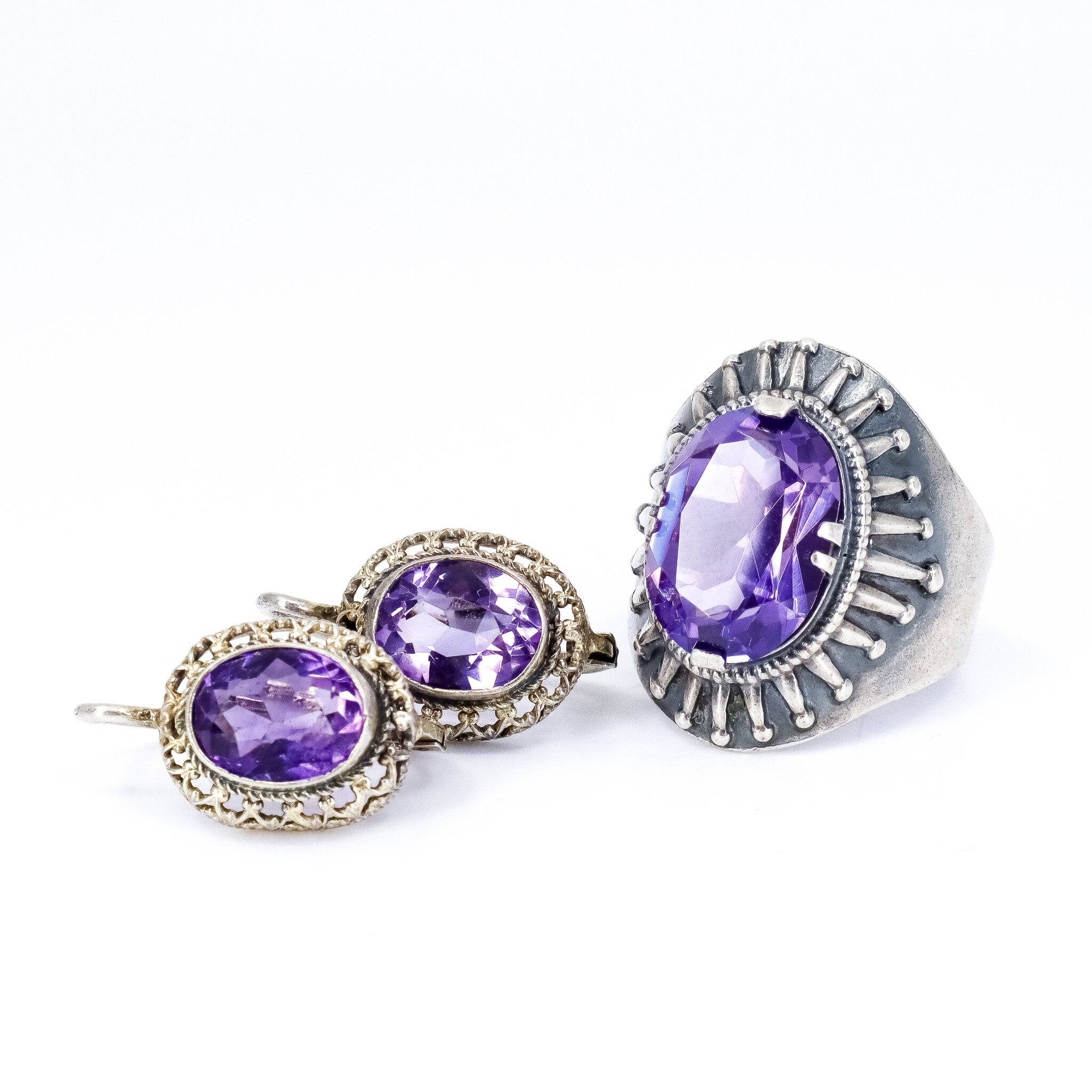 Vintage, Set of 2, Corundum Lilac Earrings and Ring in Silver