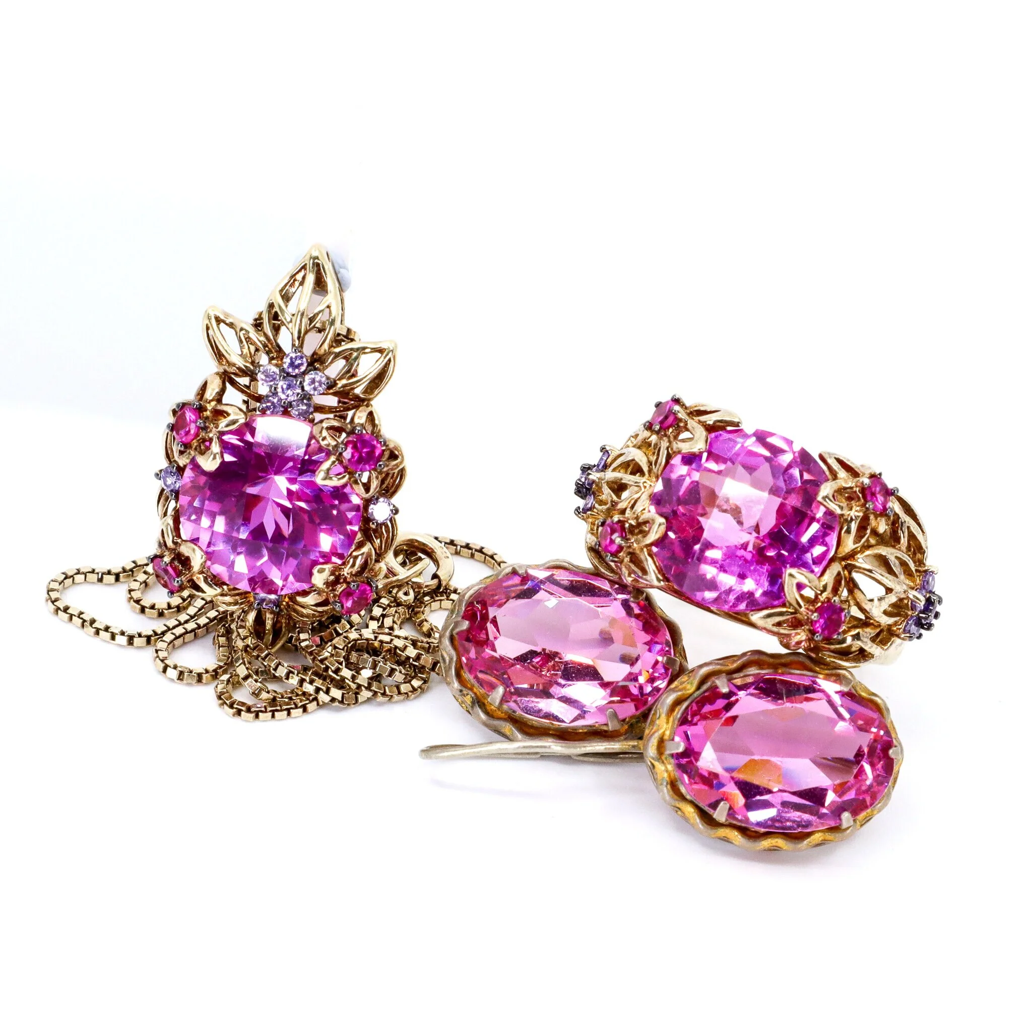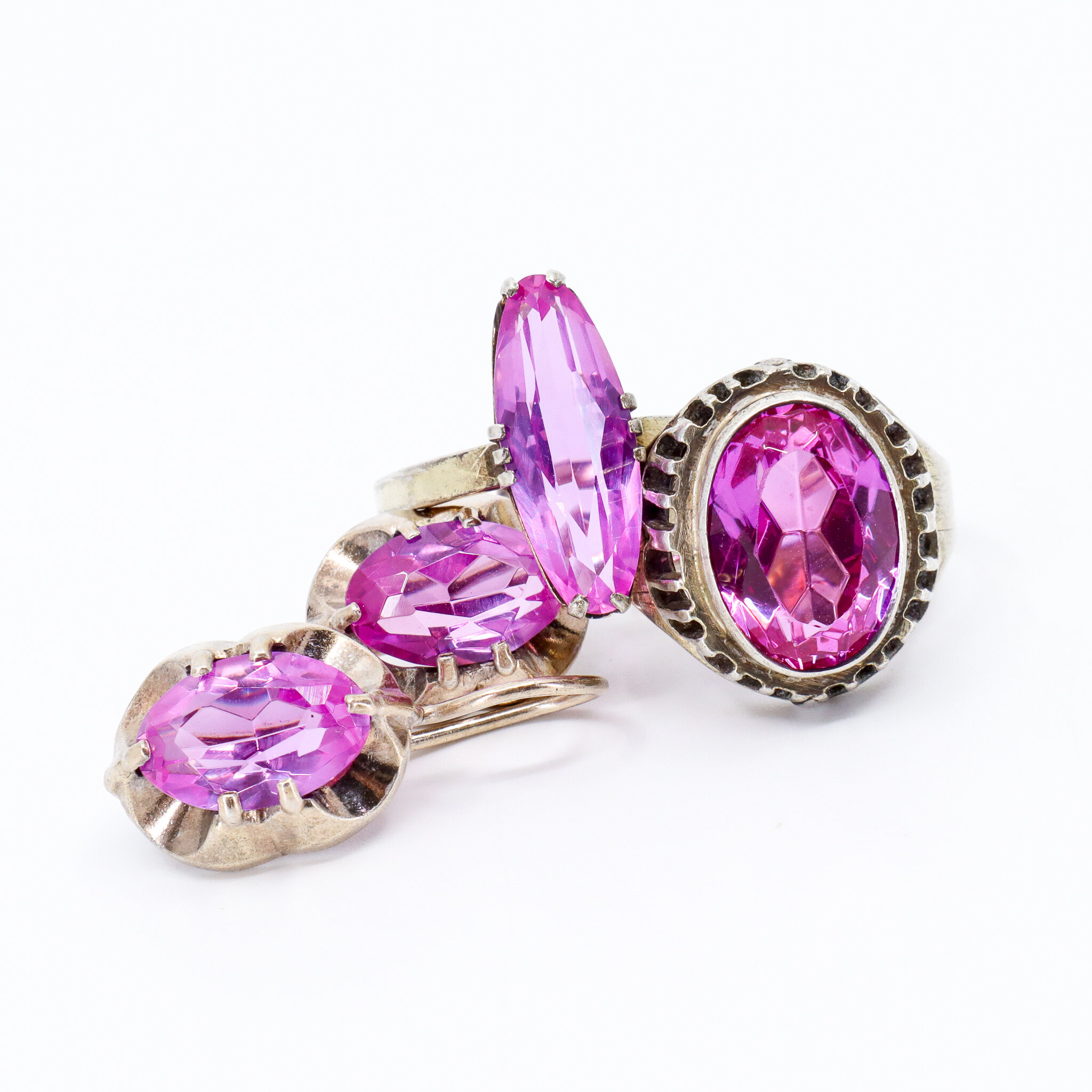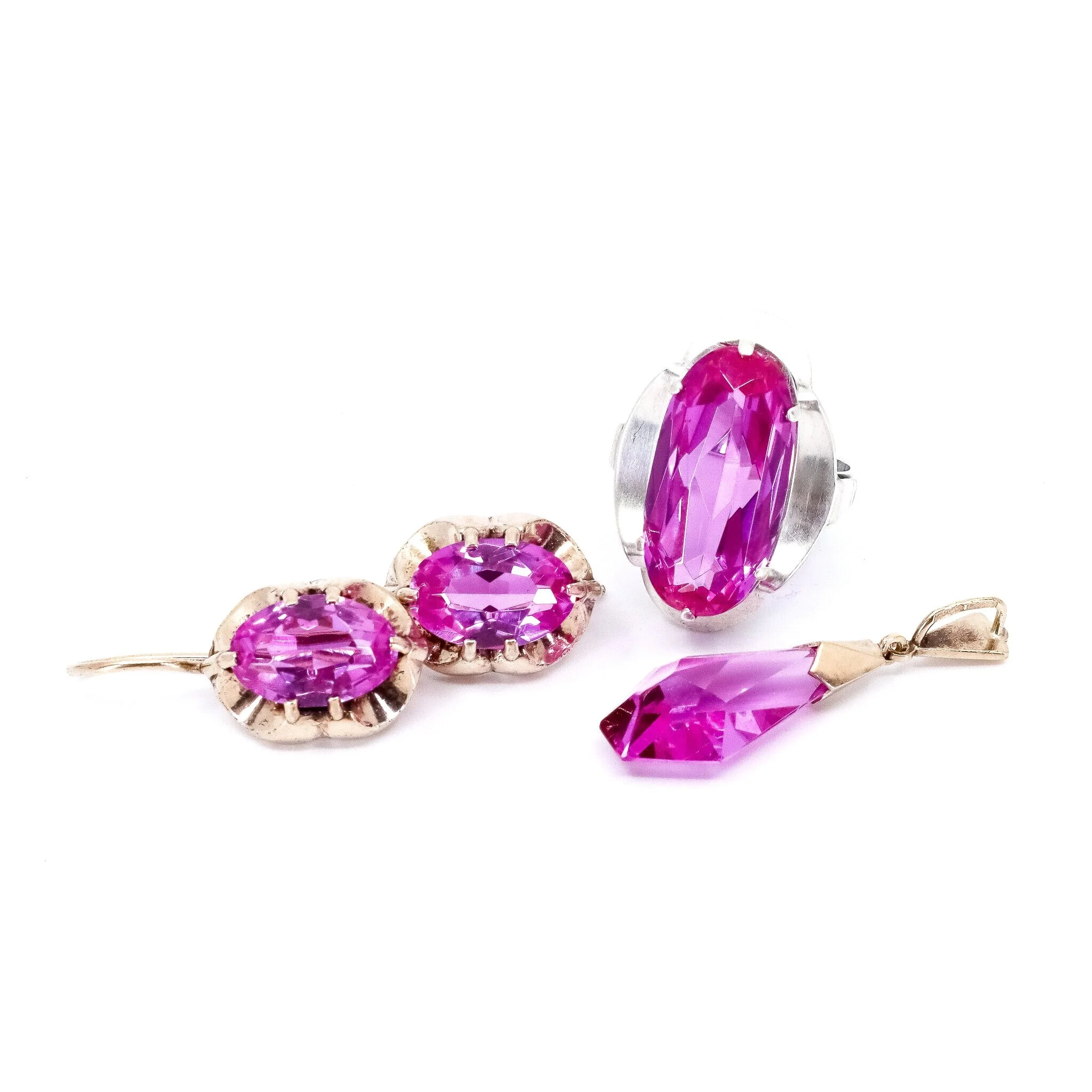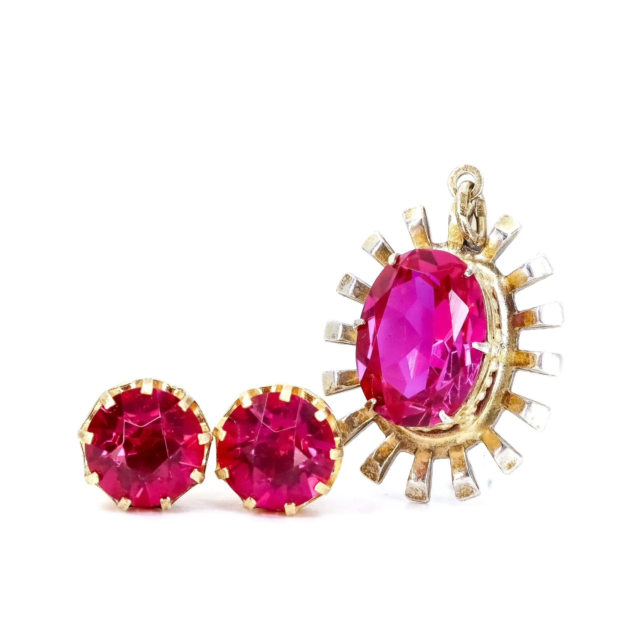 Vintage, Set of 3, Corundum Earrings, Pendant and Ring