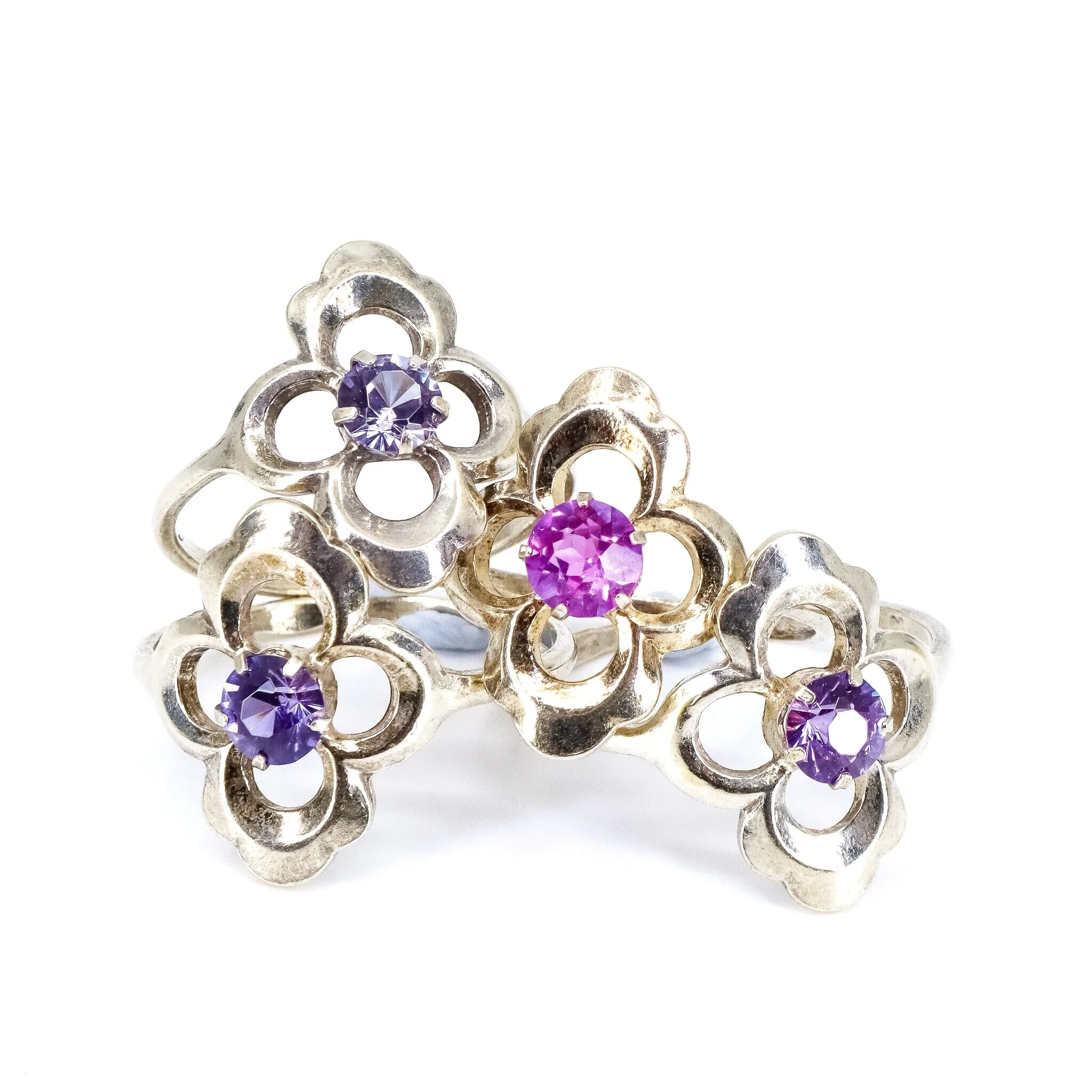Vintage, Set of 3, Corundum Raised Rings in Silver