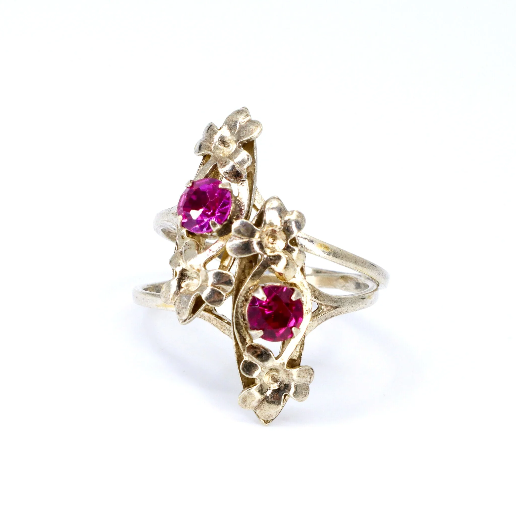 Vintage, Set of 2, Floral Corundum Rings in Gilded Silver