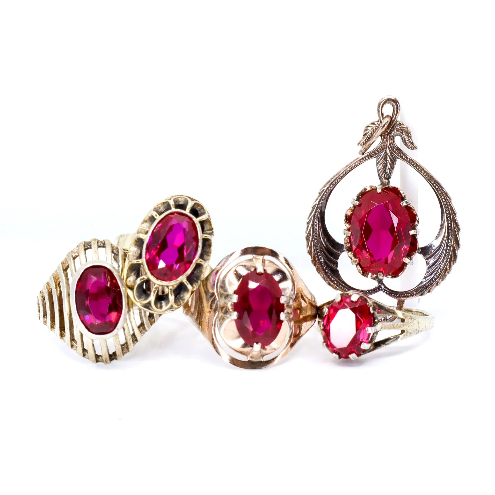 Vintage, Set of 5, Corundum Rings and Rare Pendant