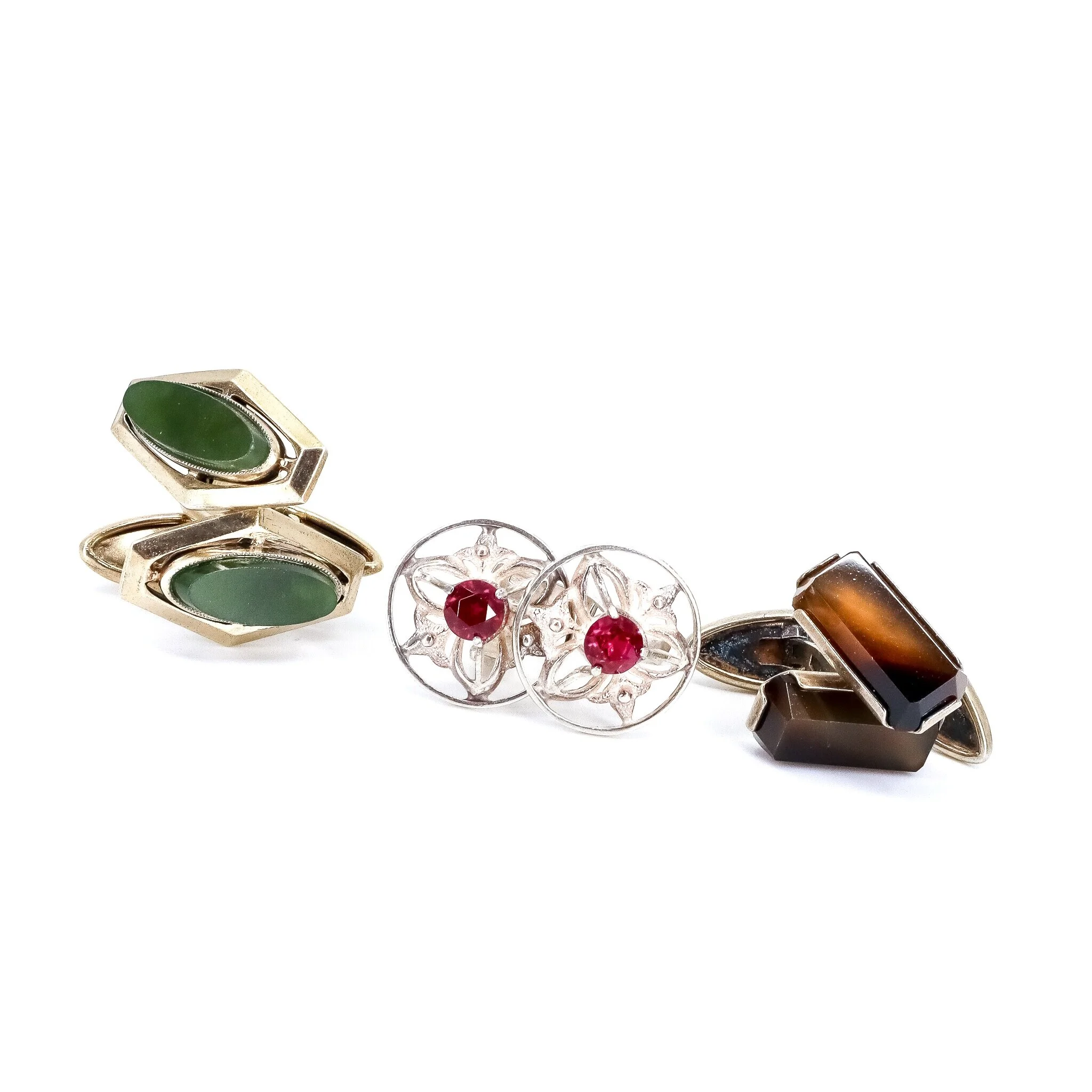 Vintage, Set of 3, Nephrite, Agate and Corundum Cufflinks